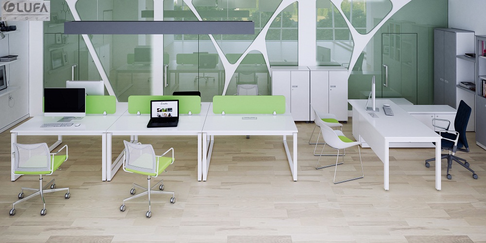 Kiểu dáng : + Cụm bàn làm việc đôi, mặt vuông