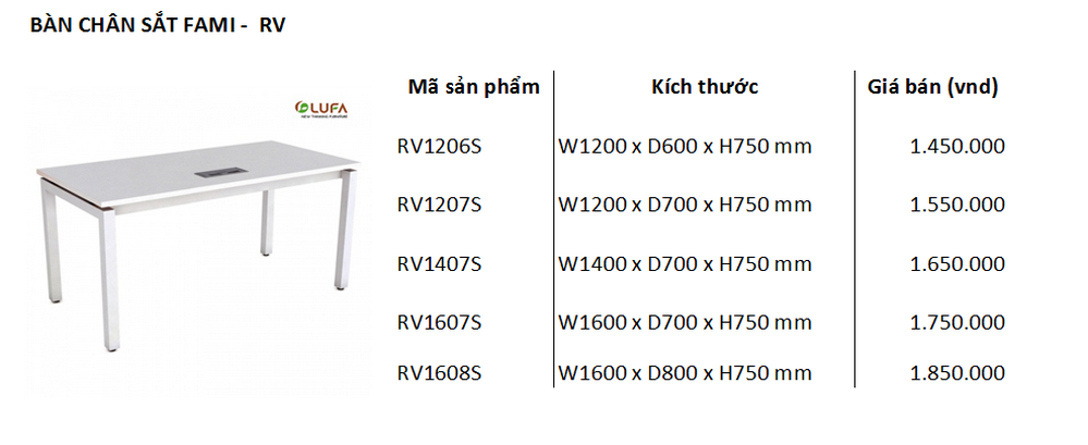 Kích thước : Thuộc dòng bàn đơn chân sắt RV, dòng này có 5 kích thước khác nhau phù hợp với nhu cầu sử dụng cho từng không gian làm việc