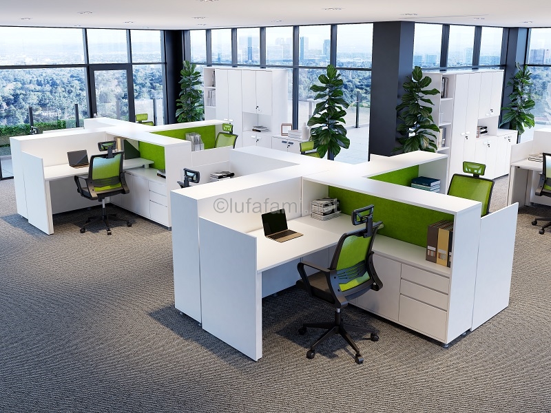 Bộ sản phẩm style D02 ngoài tủ tài liệu C1618M, kết hợp với bàn liền tủ D02-D1580M và vách ngăn mặt D02-VN0710M
